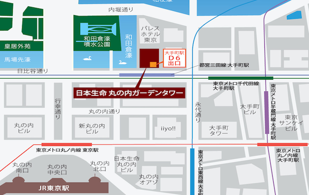 | アクセス | 東京メトロ各線「大手町」駅(D6出口直結) 東京メトロ丸ノ内線「東京」駅(「大手町」駅 D6出口直結) JR「東京」駅(丸の内北口より徒歩7分) |